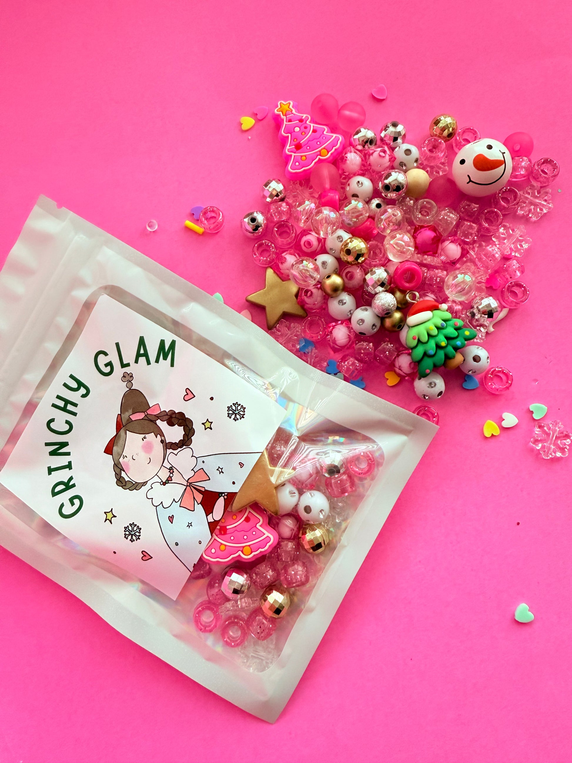 This kit will come with a beautiful mix of Pinkmas beads alongside 2 charms, our statement pink tree focal charm, our cute little snowman.